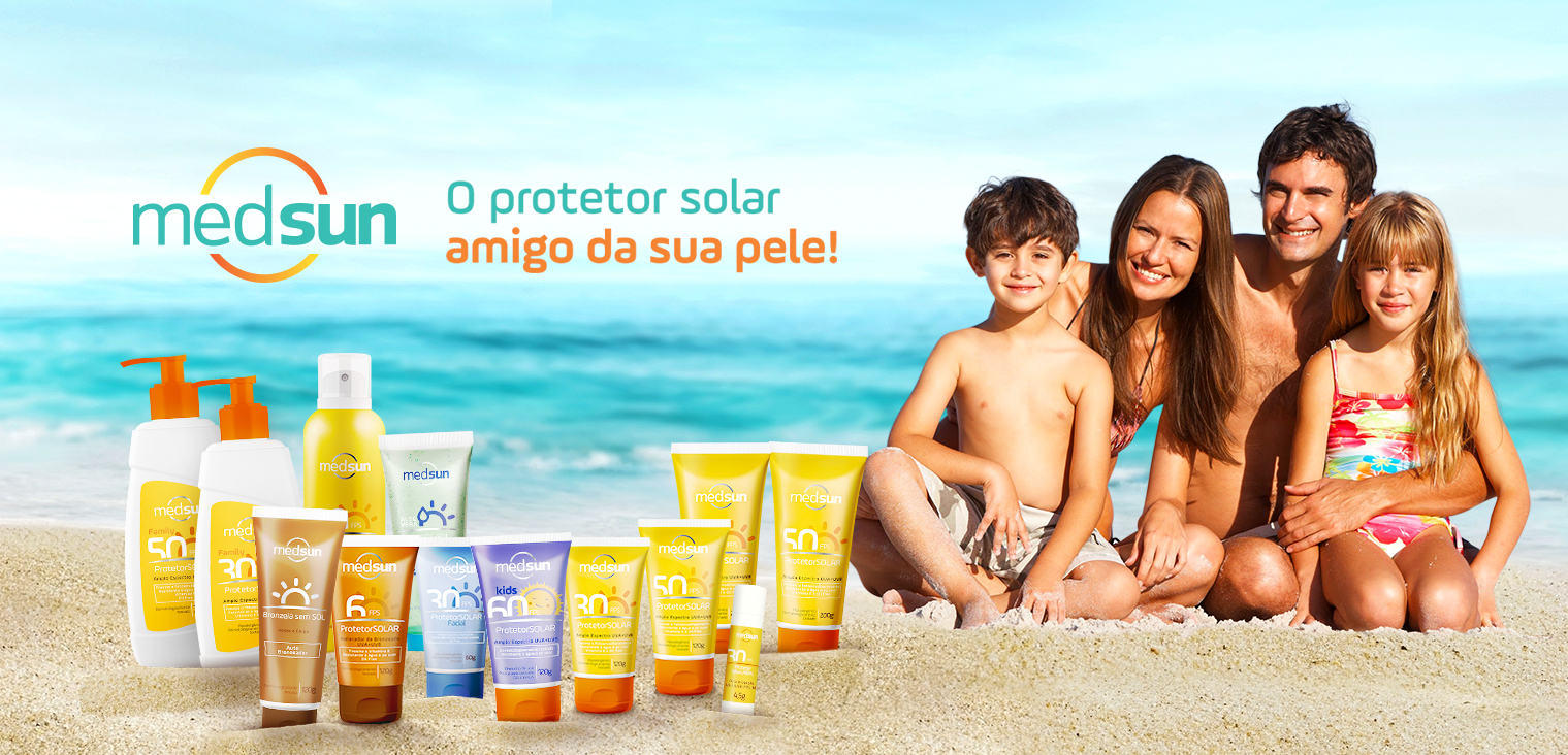 A Medsun é uma marca completa de proteção solar para toda a família. É o único protetor solar com amplo espectro UVA + UVB, contém Vitamina E, hidrata e previne o foto envelhecimento, resistente a água e ao suor, além de ser hipoalergênico.